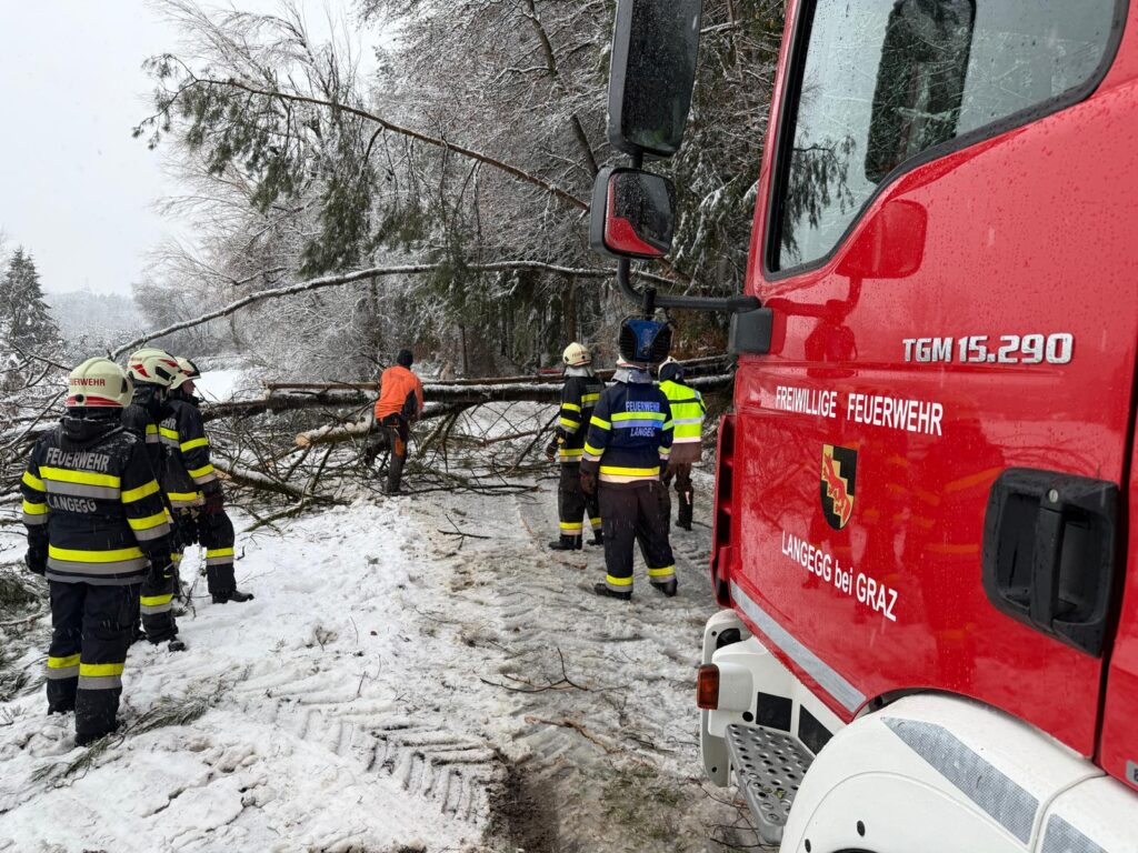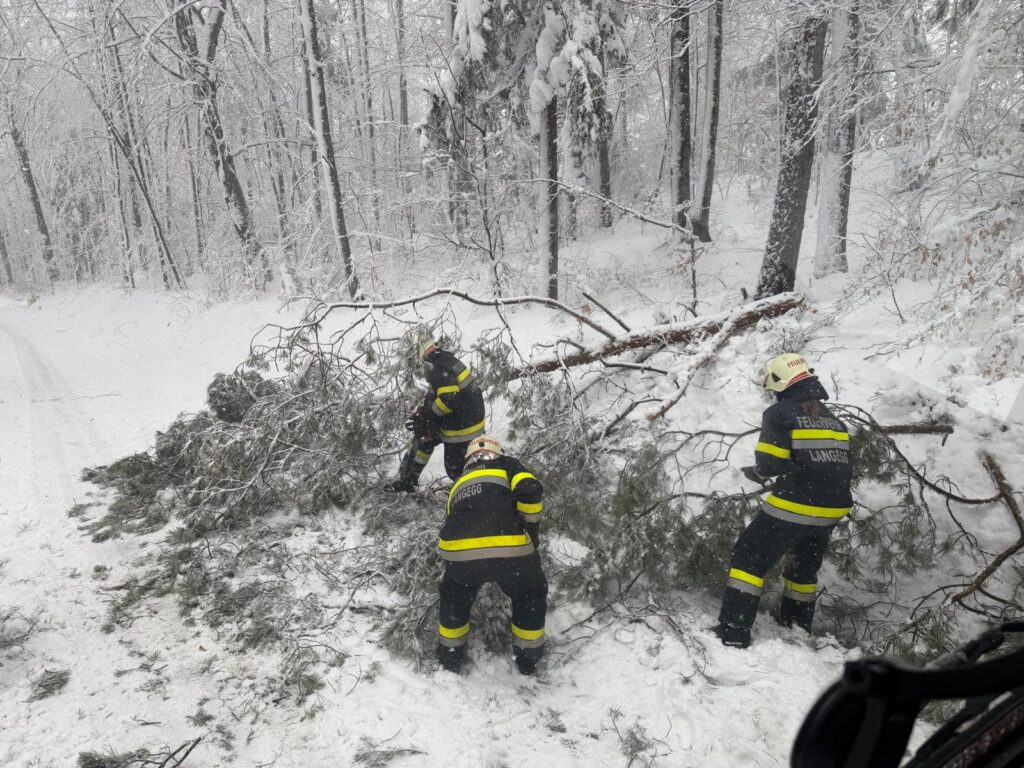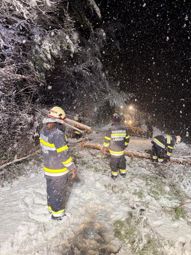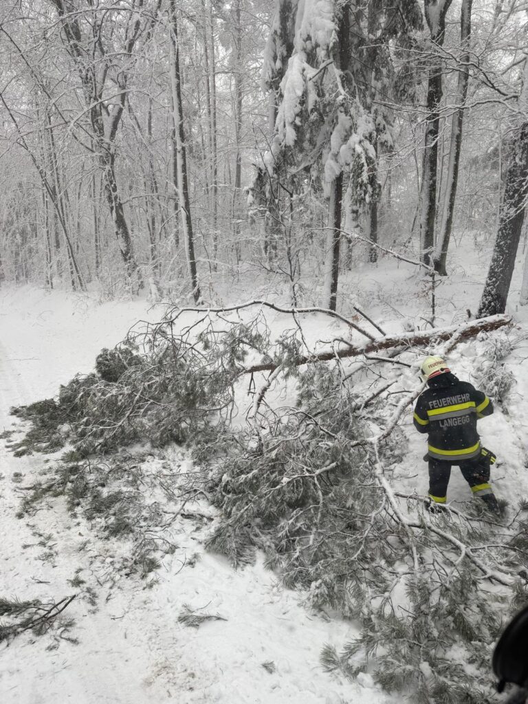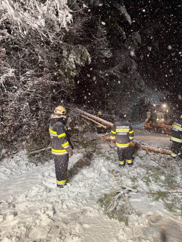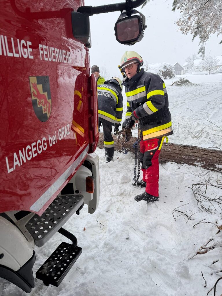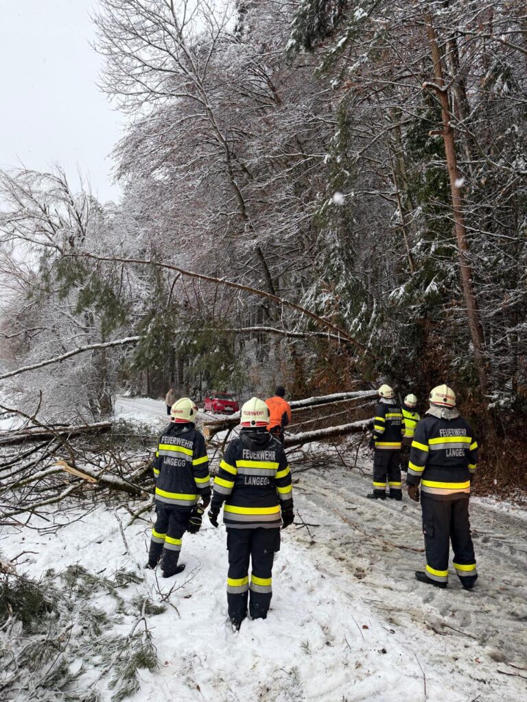 Der heftige Schneefall sorgte für massive Schneelasten auf Bäumen und Stromleitungen. Besonders betroffen war auch das Einsatzgebiet der Langegg bei Graz, wo die Schneemassen zu zahlreichen Baumbrüchen führten. Die FF-Langegg hatte mit schwierigen Wetterbedingungen zu kämpfen, da der starke Schneefall die Arbeiten erschwerte. Der Einsatz startete um 05:45 früh und endete erst am späten Nachmittag.