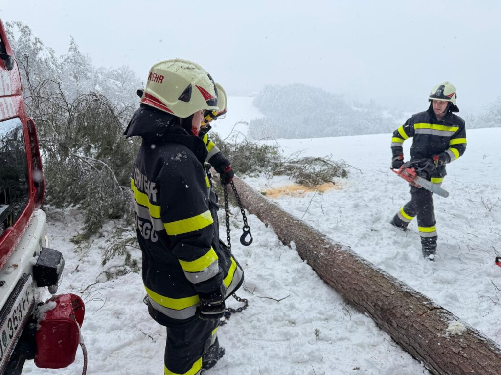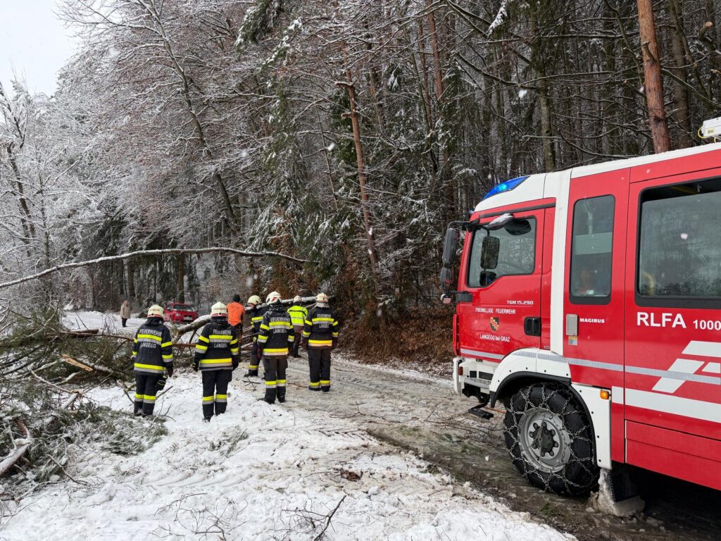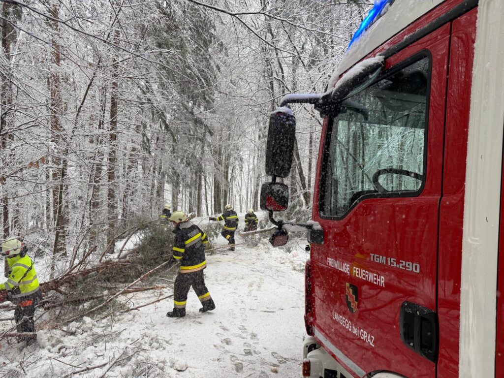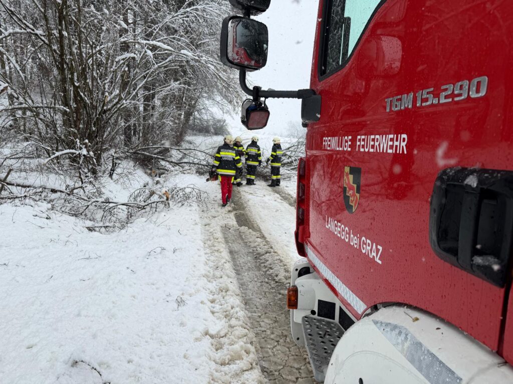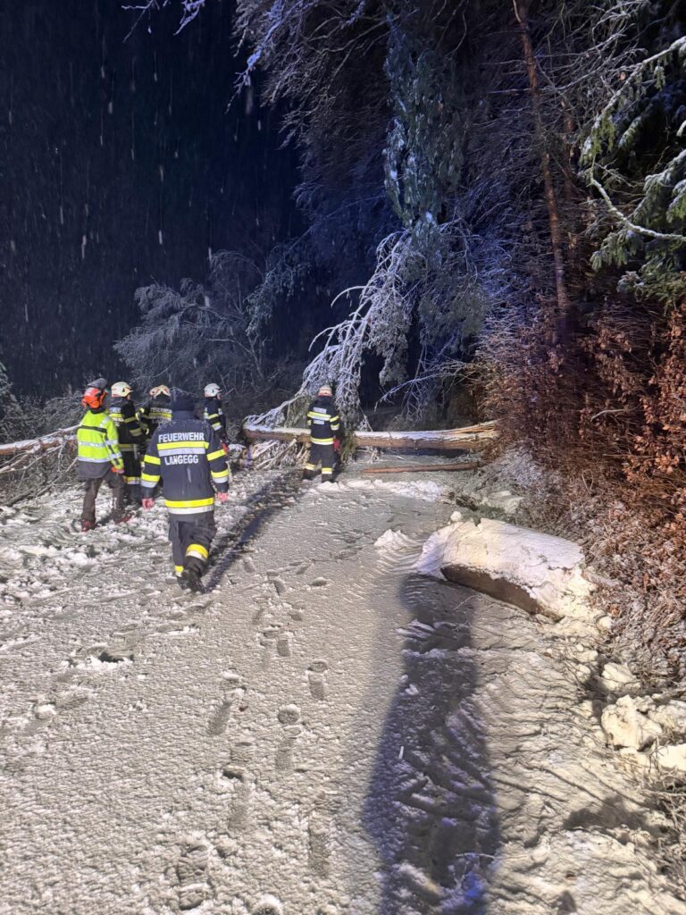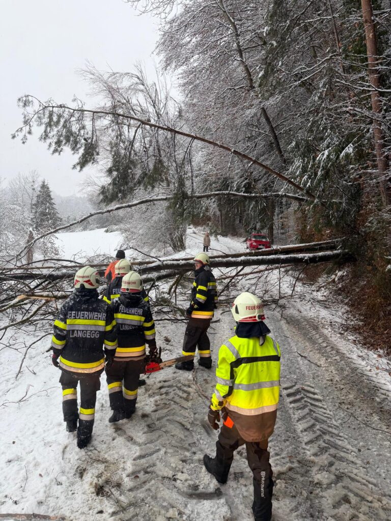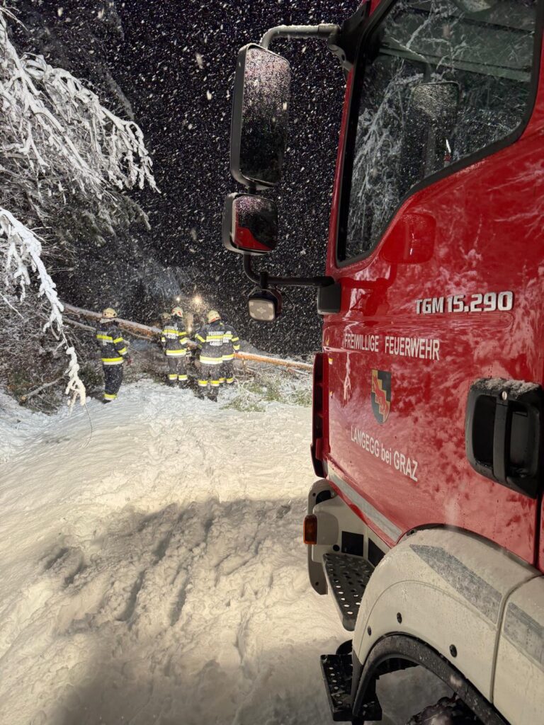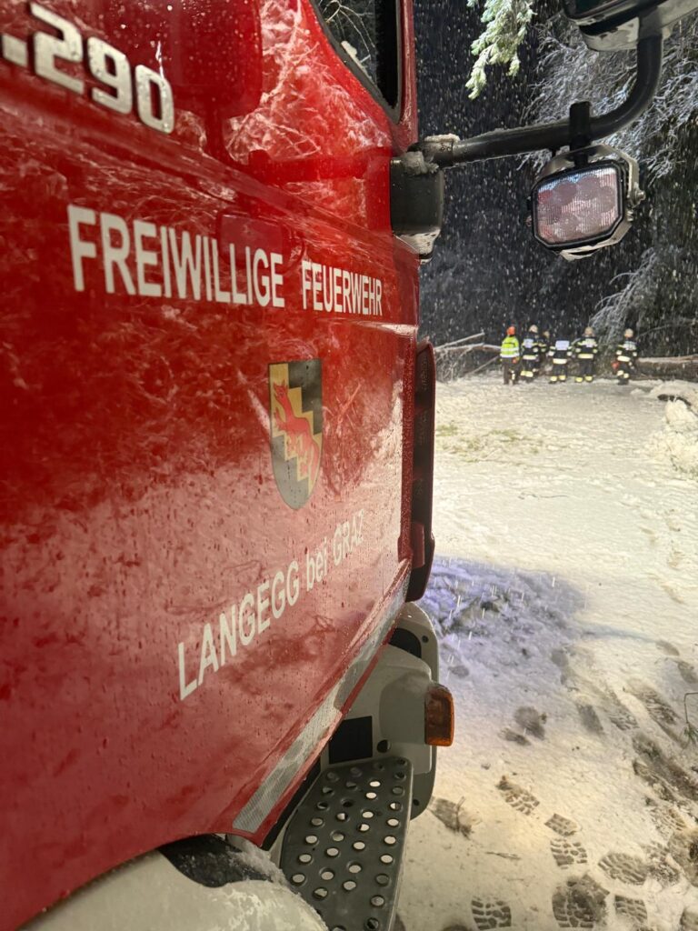 Der heftige Schneefall sorgte für massive Schneelasten auf Bäumen und Stromleitungen. Besonders betroffen war auch das Einsatzgebiet der Langegg bei Graz, wo die Schneemassen zu zahlreichen Baumbrüchen führten. Die FF-Langegg hatte mit schwierigen Wetterbedingungen zu kämpfen, da der starke Schneefall die Arbeiten erschwerte. Der Einsatz startete um 05:45 früh und endete erst am späten Nachmittag.