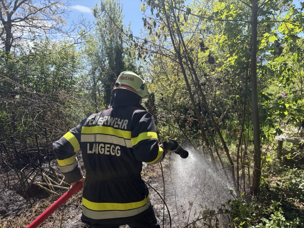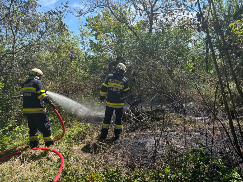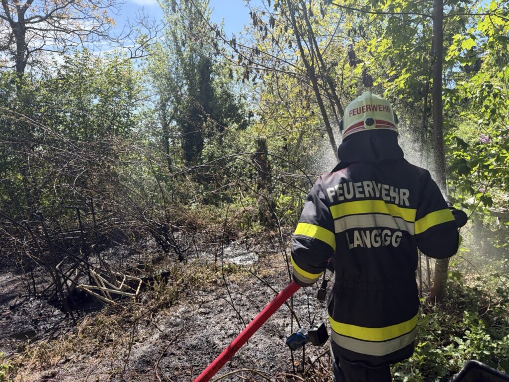 Am 26.04.2026 mussten wir um die Mittagszeit zu einem Müllbrand ausrücken. Die Lage war aufgrund der extremen Trockenheit und den naheliegenden Sträuchern und Bäumen gefährlich. Eingesetzt waren die FF-Langegg mit RLFA und die Polizei.
