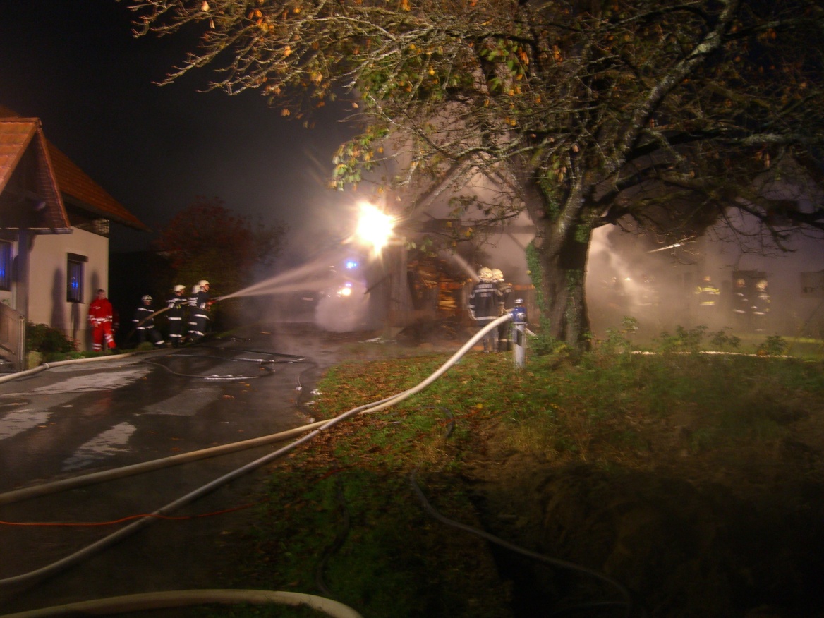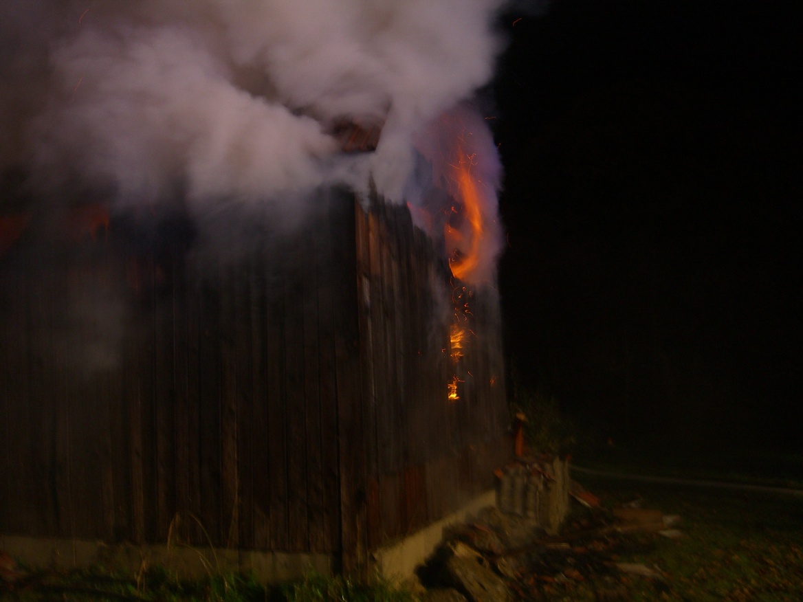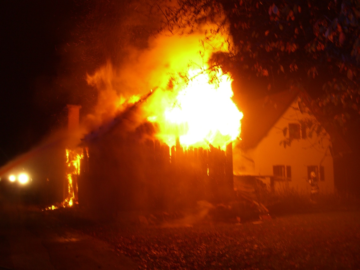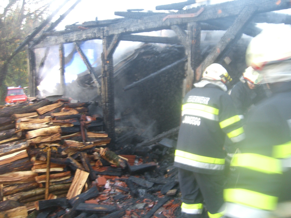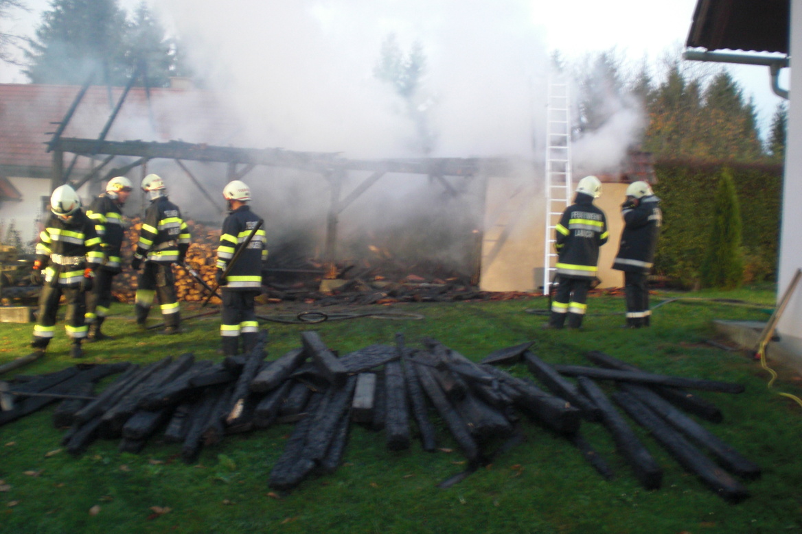 In mitten zweier Wohnhäuser (Ortsteil Zaunstein) kam eine Holzlagerscheune zu Brand. Durch die sofort eingeleiteten Löscharbeiten