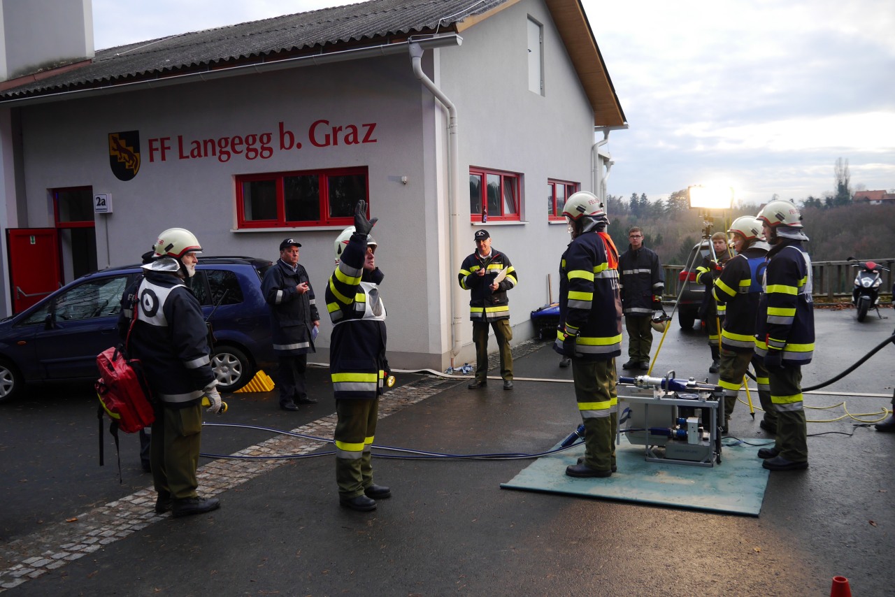 Am 30.11.2013 fand die technische Hilfeleistungs Prüfung bei der FF-Langegg statt. Im Rahmen dieser Prüfung wurde ein Verkehrsunfall mit eingeklemmten Personen simuliert.