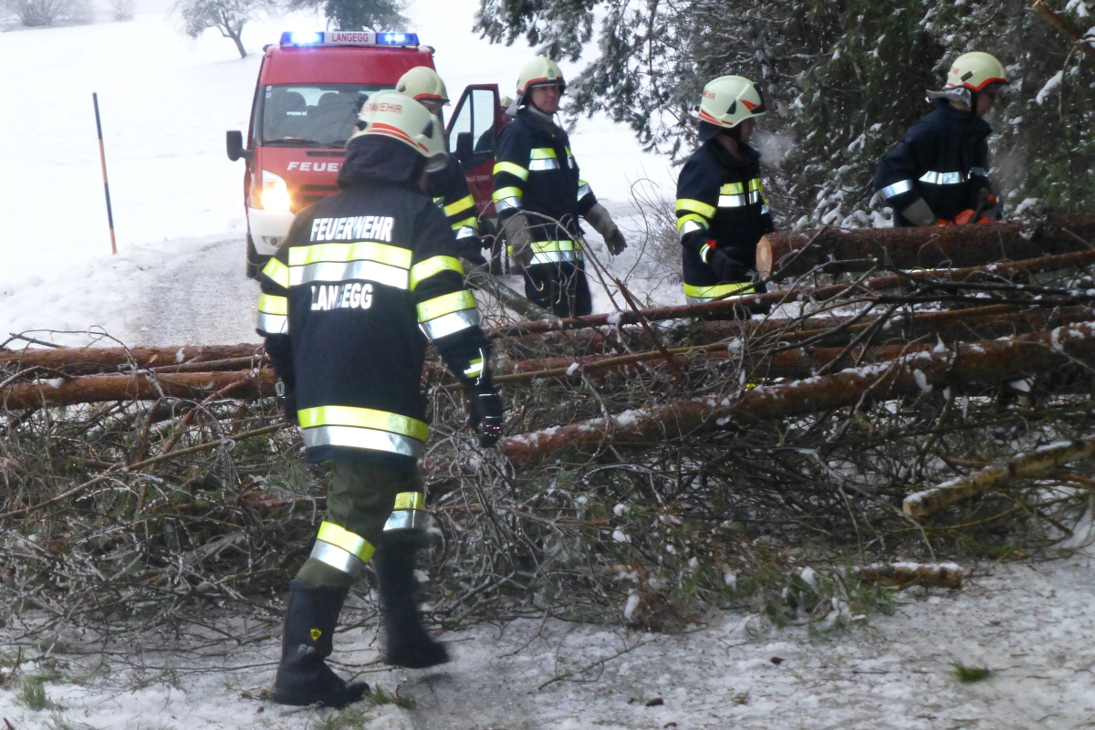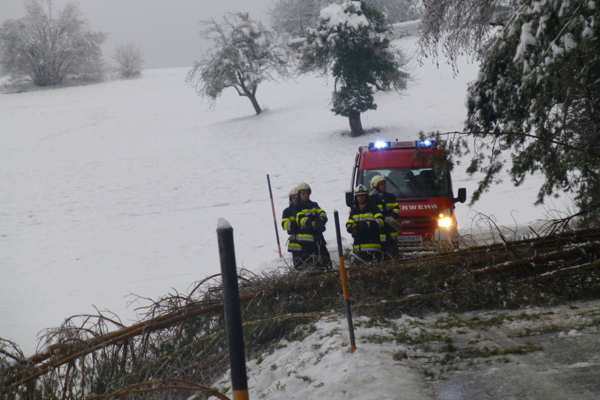Baumbergungen im Gemeindegebiet 2. Februar 2014 webmaster Allgemein Am 02.02.2014 Nachmittag musste die FF-Langegg zu diversen Baumbergungen ausrücken. Grund war der Schnee und der gefrierende Regen. Eingesetzt waren: RLFA1000 MTFA 11 Mann