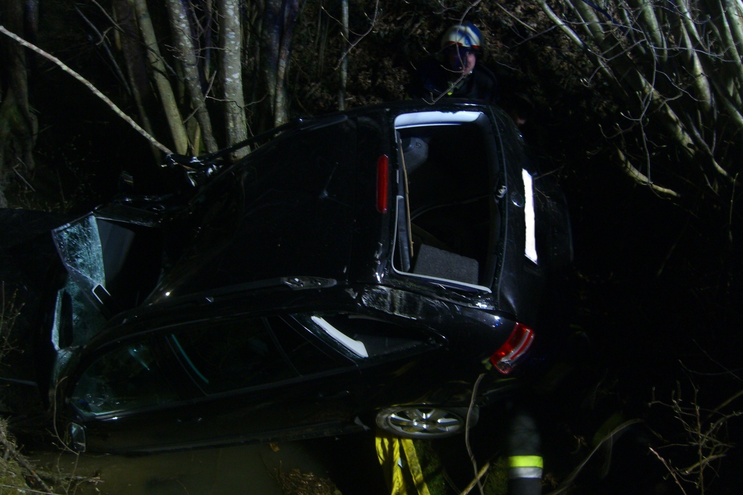 dass keine Flüssigkeiten austraten, konnten wir den PKW aus den Bachbett bergen.