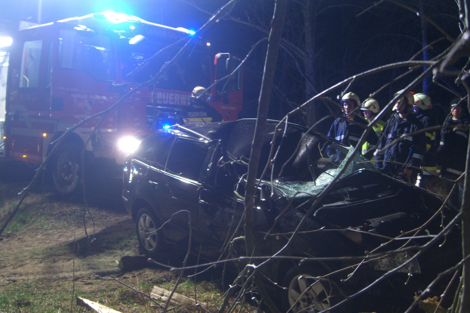 Zum Glück konnte sich die verunfallte Person gerade noch unter Mithilfe einer Privatperson aus dem Auto befreien