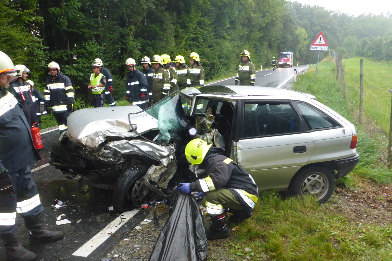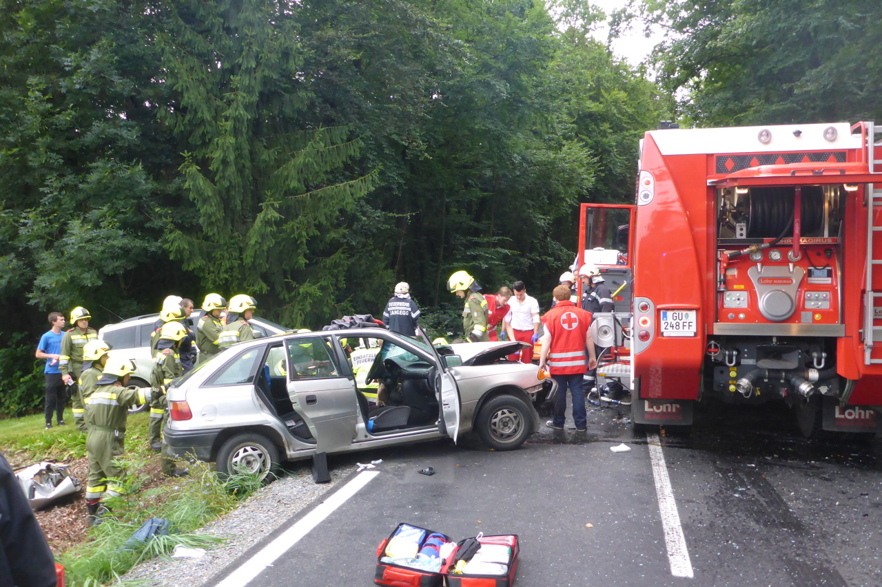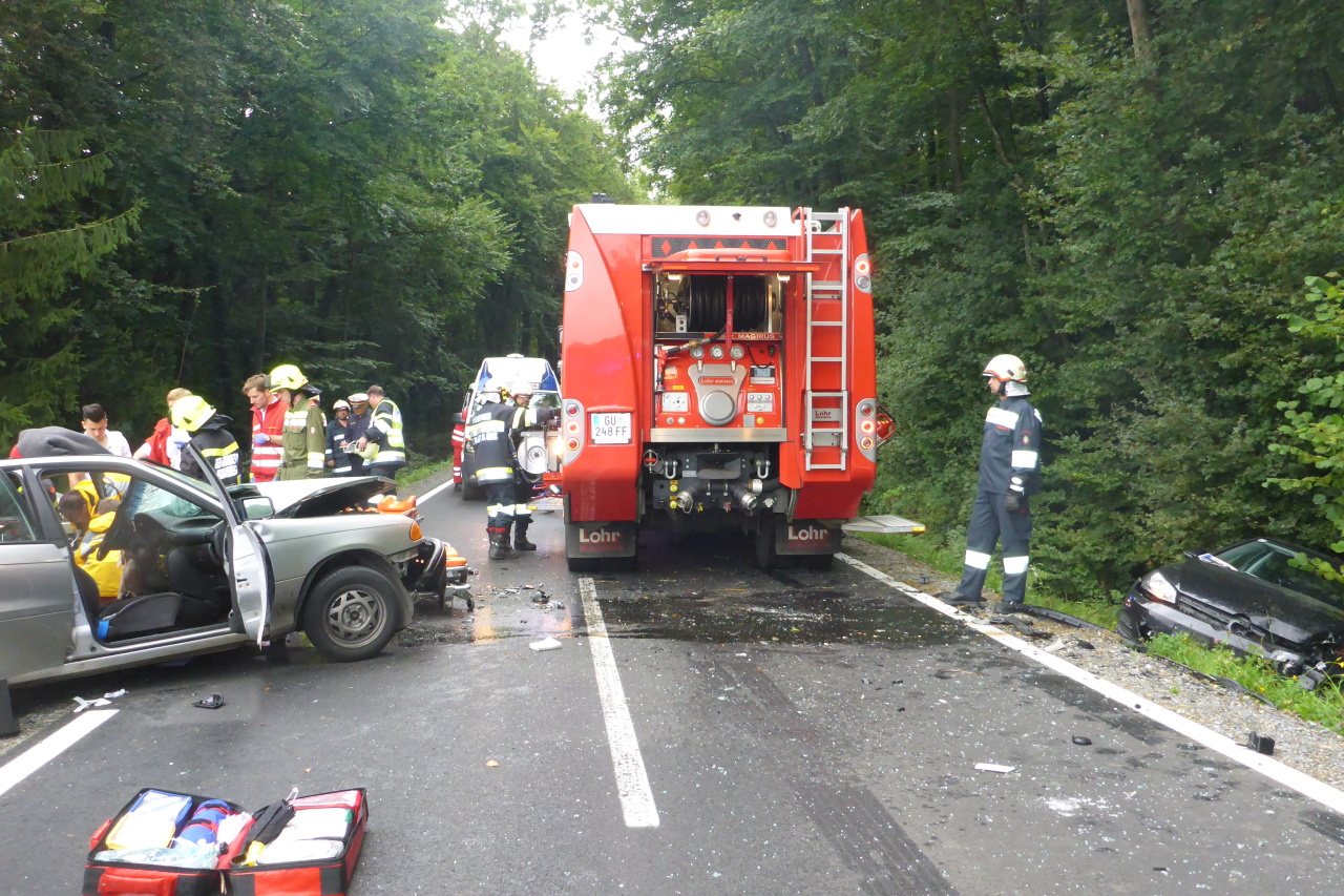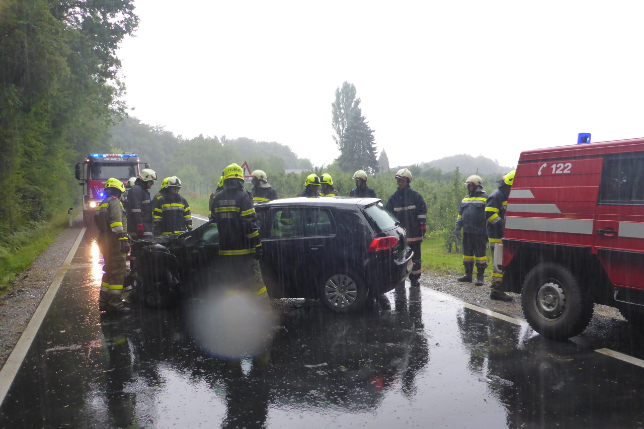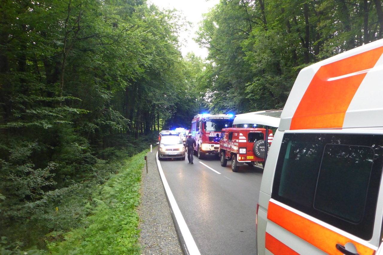 Verkehrsunfall auf der L305 12. August 2014 webmaster Allgemein Am 12.08.2014 14:35 Uhr wurde die FF-Langegg wegen eines Verkehrsunfalls mit einer eingeklemmten Person alarmiert. Eingesetzt waren: FF-Langegg FF-Krumegg FF-St.Marein Polizei Rotes Kreuz