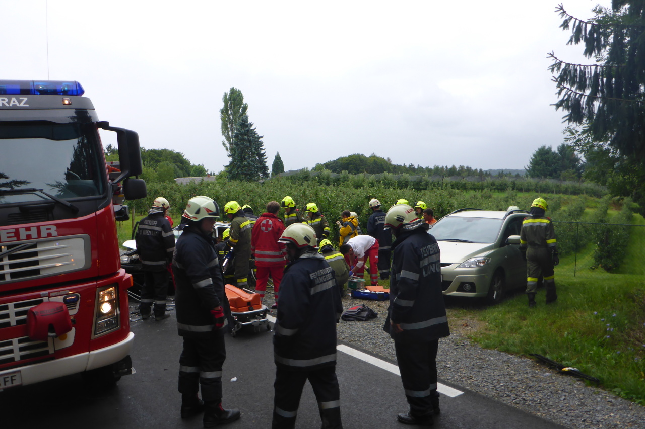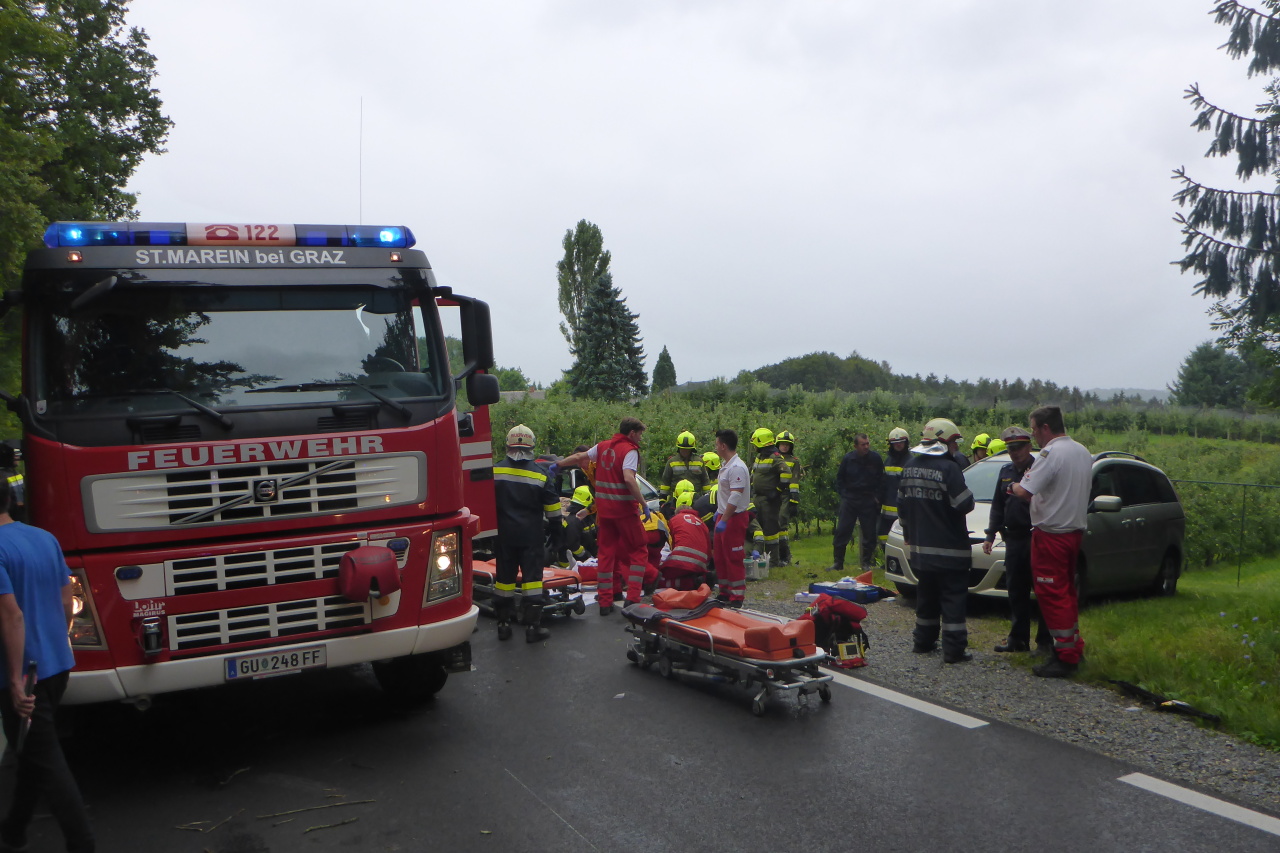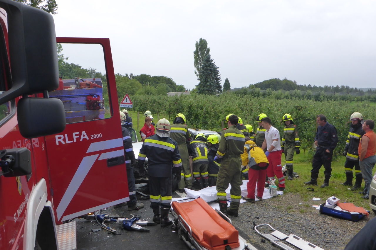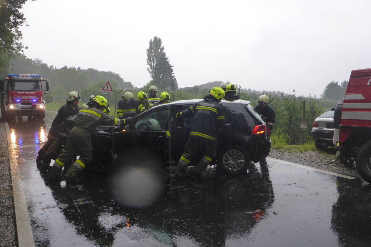 Verkehrsunfall auf der L305 12. August 2014 webmaster Allgemein Am 12.08.2014 14:35 Uhr wurde die FF-Langegg wegen eines Verkehrsunfalls mit einer eingeklemmten Person alarmiert. Eingesetzt waren: FF-Langegg FF-Krumegg FF-St.Marein Polizei Rotes Kreuz