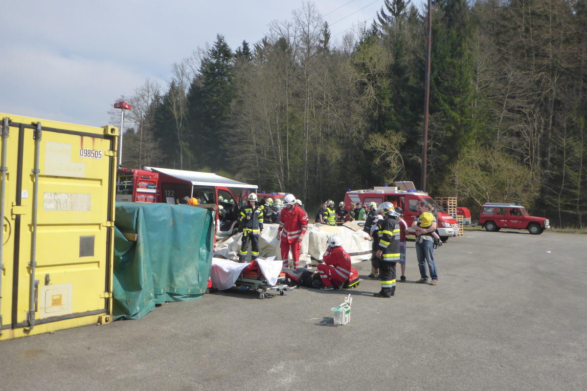 Geübt wurde ein Tischlereibrand sowie ein schwerer Verkehrsunfall.