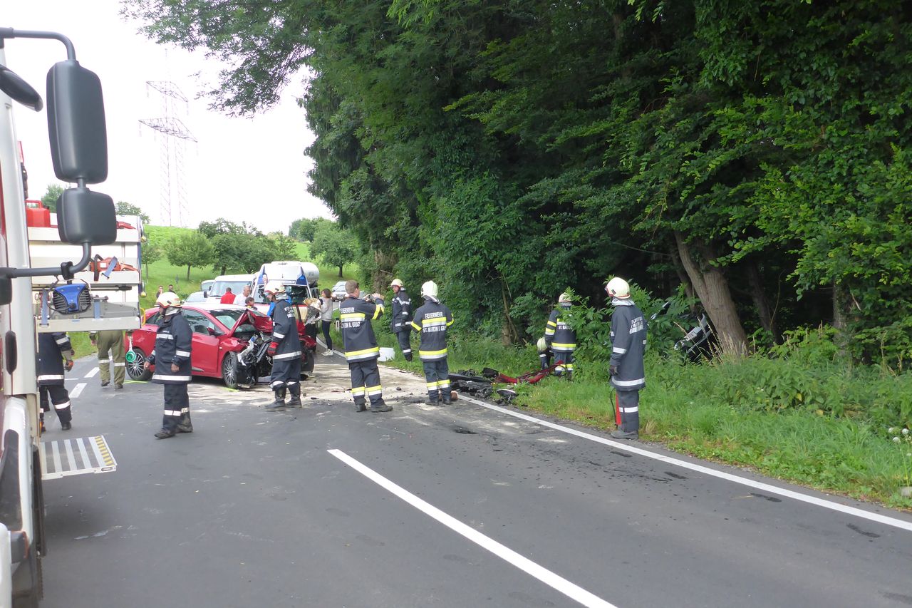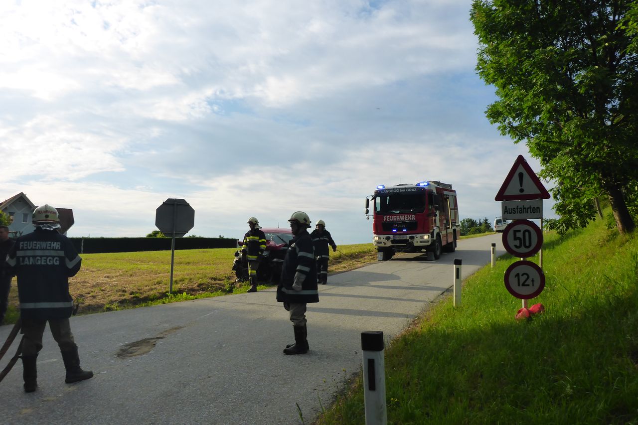 Am 17.06.2015 06:25 Uhr rückte die FF-Langegg zum dritten Verkehrsunfall innerhalb von 24 Stunden aus. Dabei gab es einen Schwerverletzten, der im Fahrzeug eingeklemmt war.