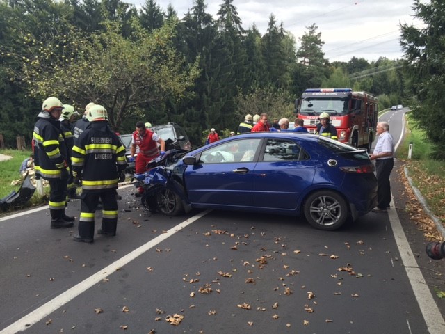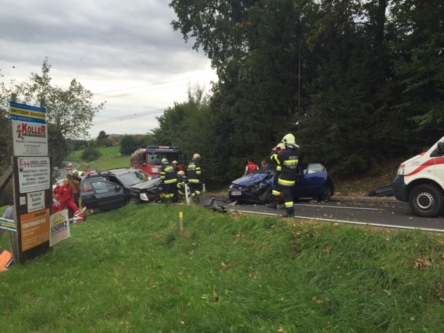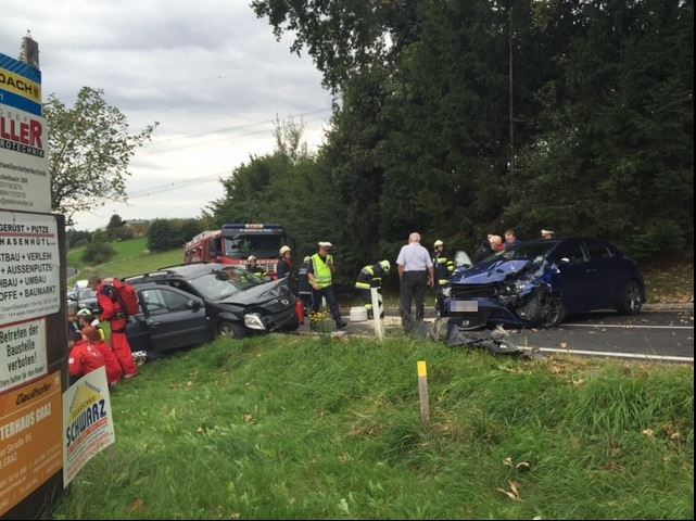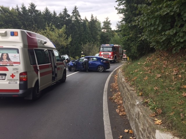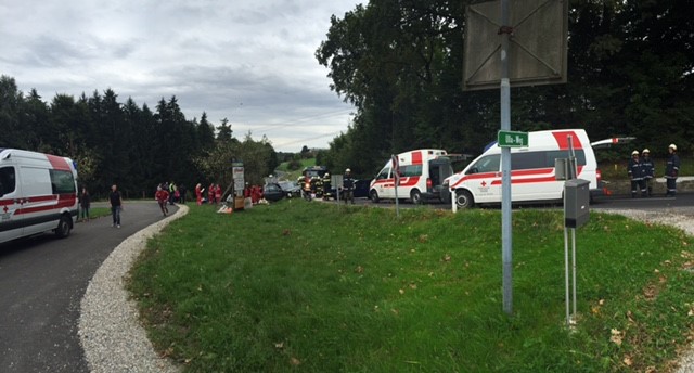 Verkehrsunfall auf der L305 27. September 2015 webmaster Allgemein Am 27.09.2015 wurde die FF-Langegg zu einem Verkehrsunfall mit sechs verletzten Personen alarmiert. Eingesetzt waren: FF-Langegg mit RLFA1000, MTFA, 16 Mann FF-St.Marein Rotes Kreuz Polizei