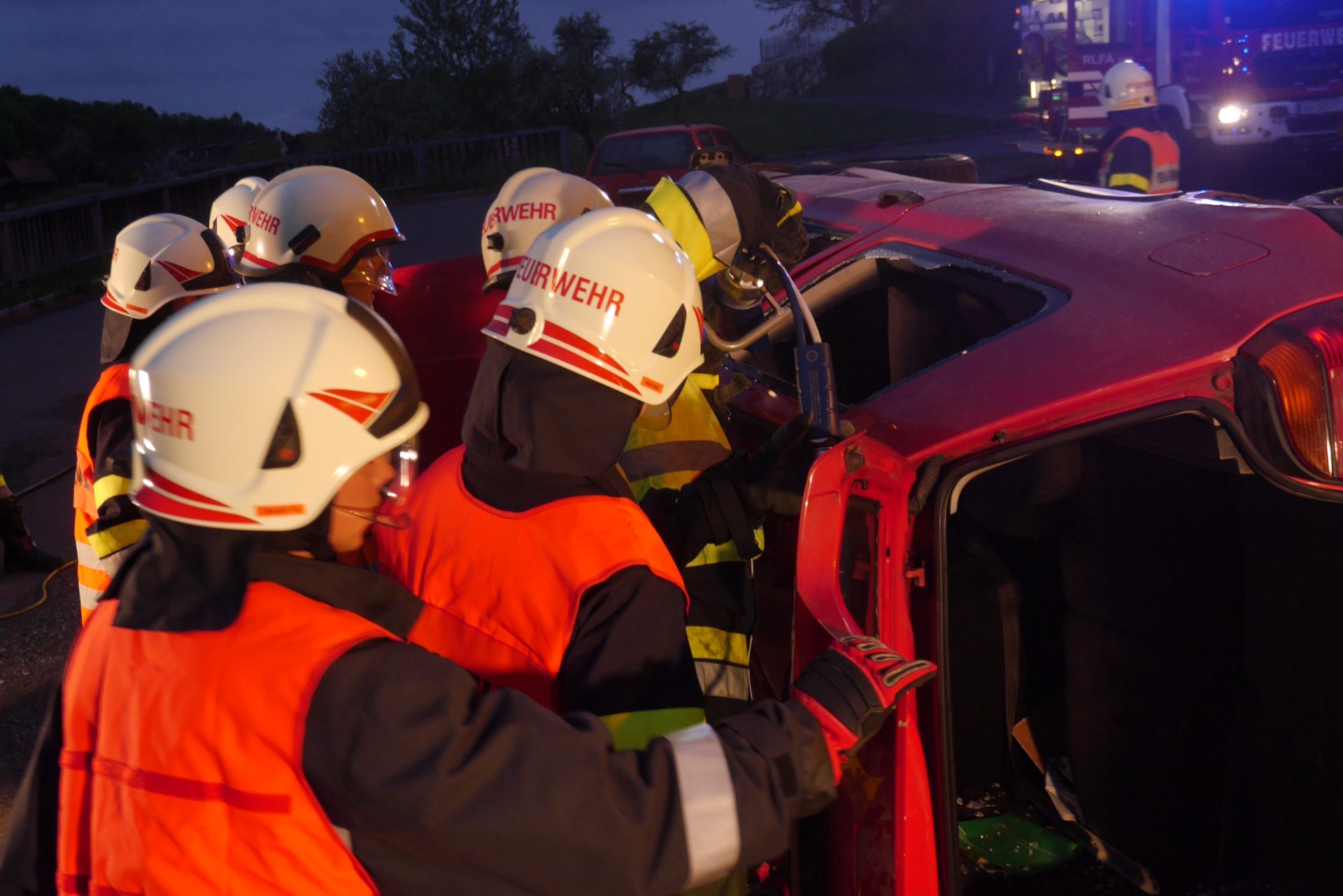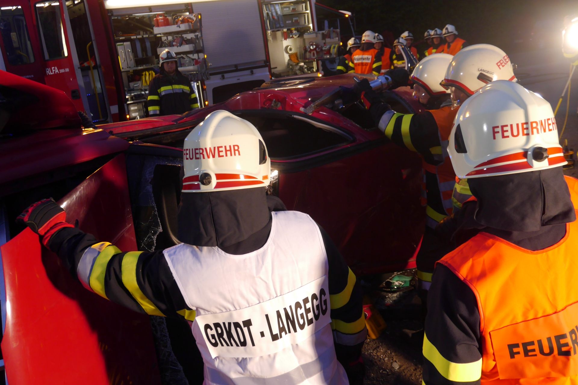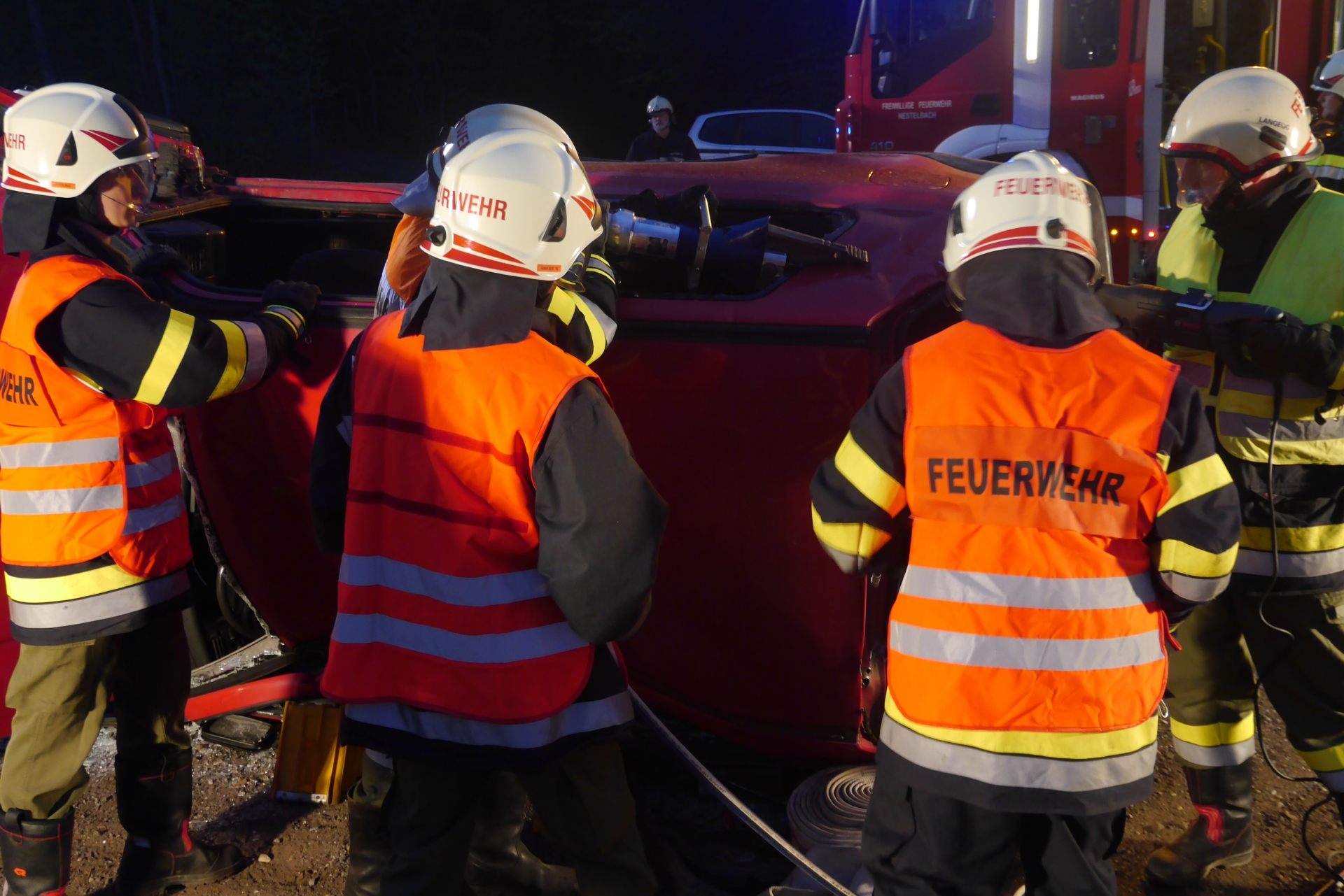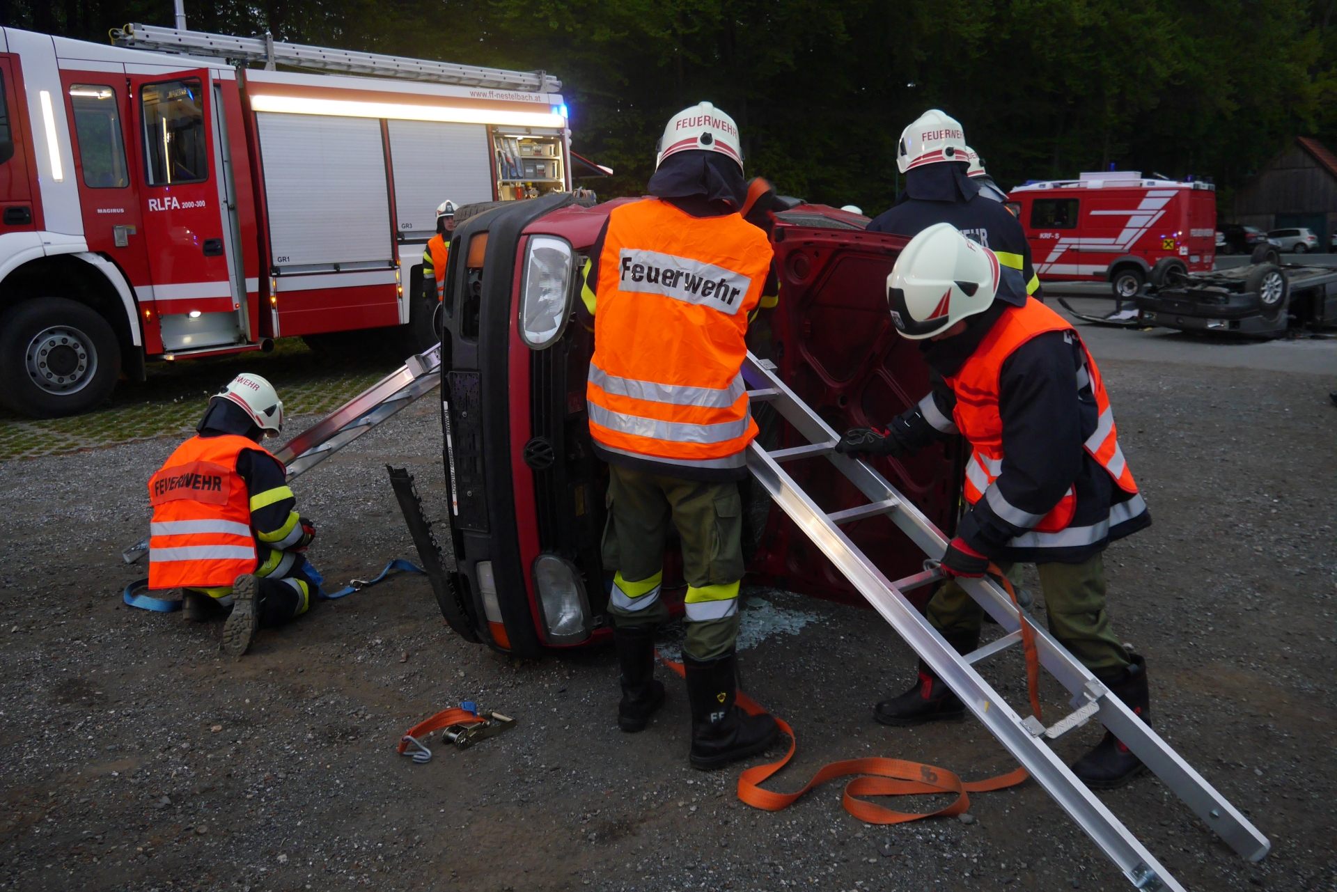 Ziel der Übung war die Rettung von verletzten Personen aus verunfallten Fahrzeugen.