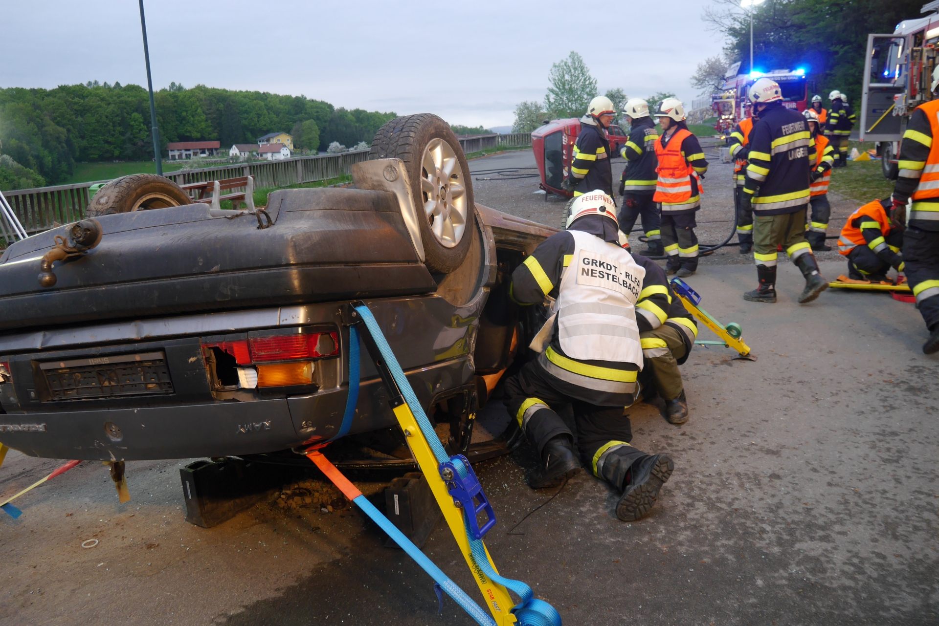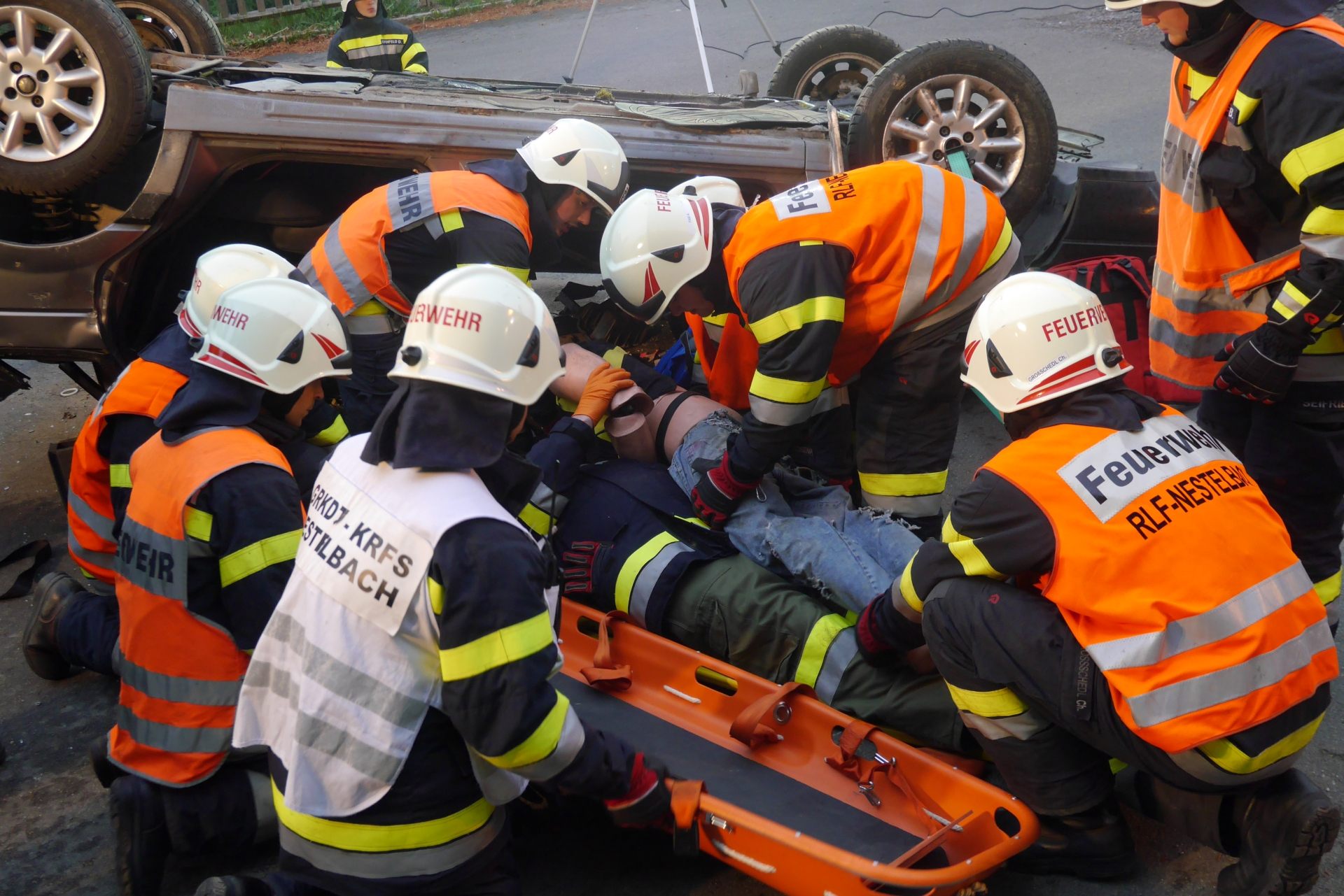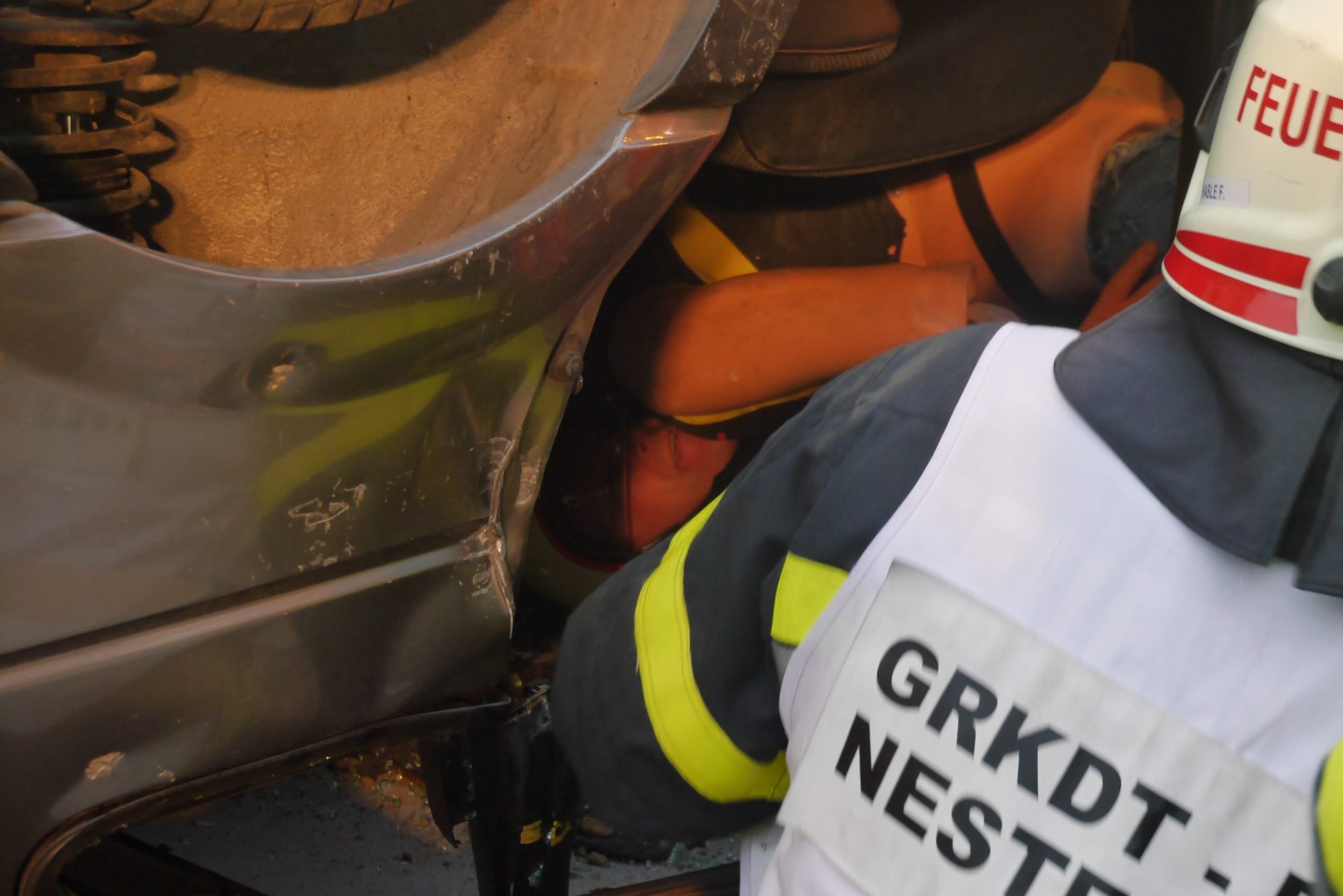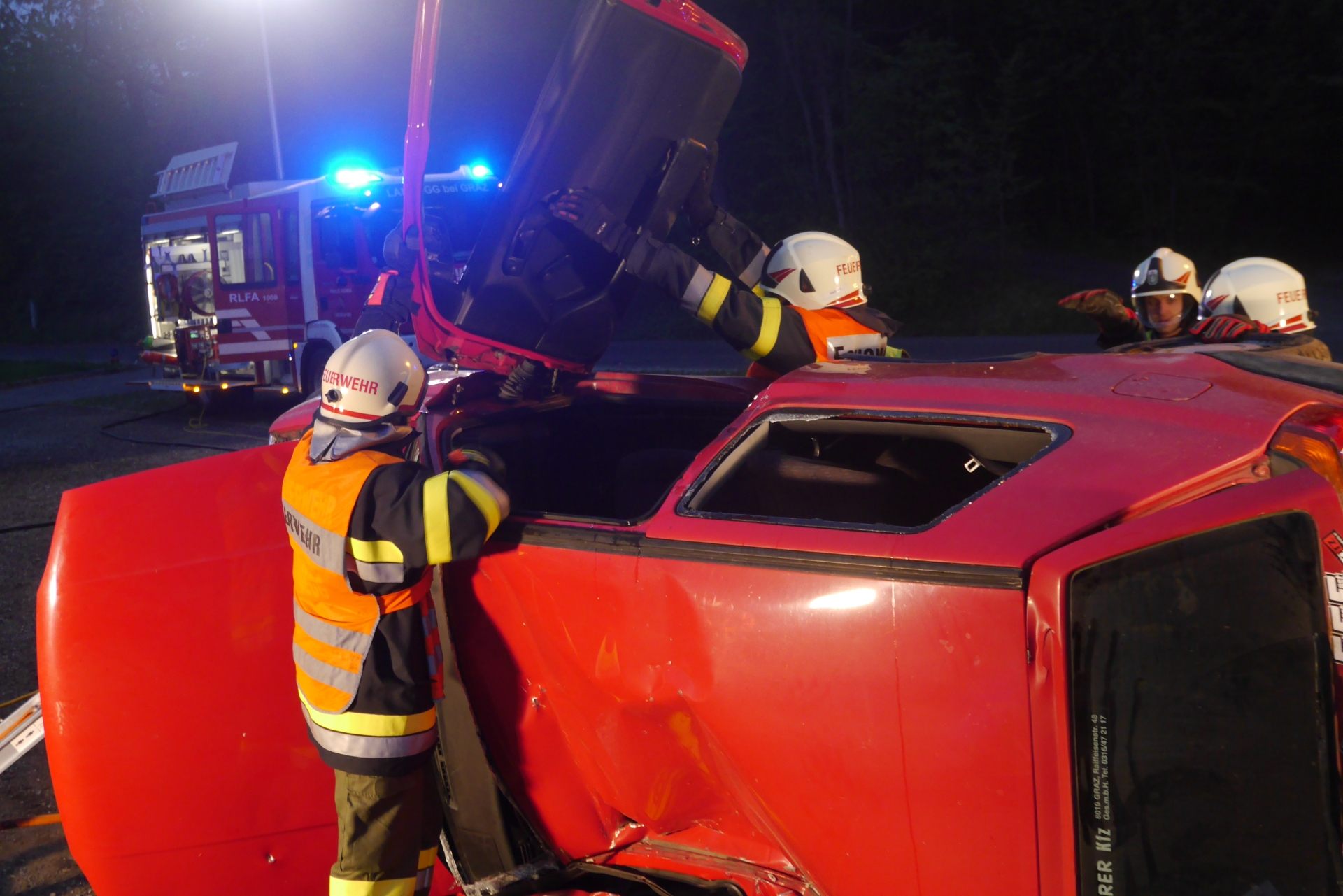 Ziel der Übung war die Rettung von verletzten Personen aus verunfallten Fahrzeugen.