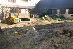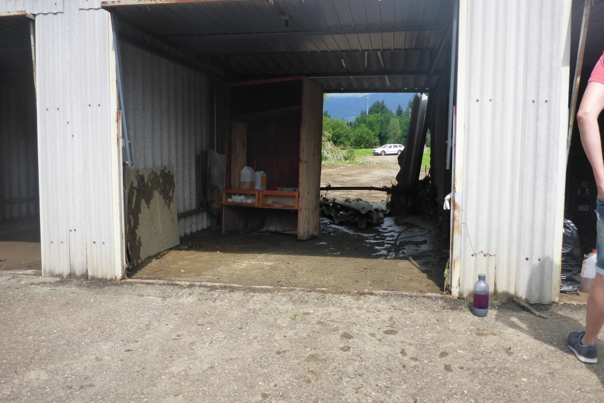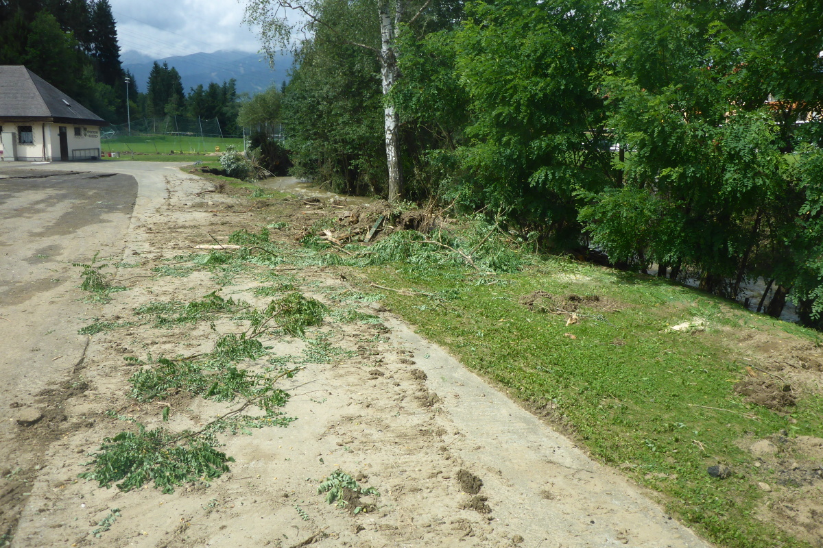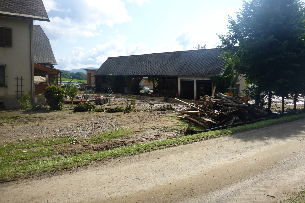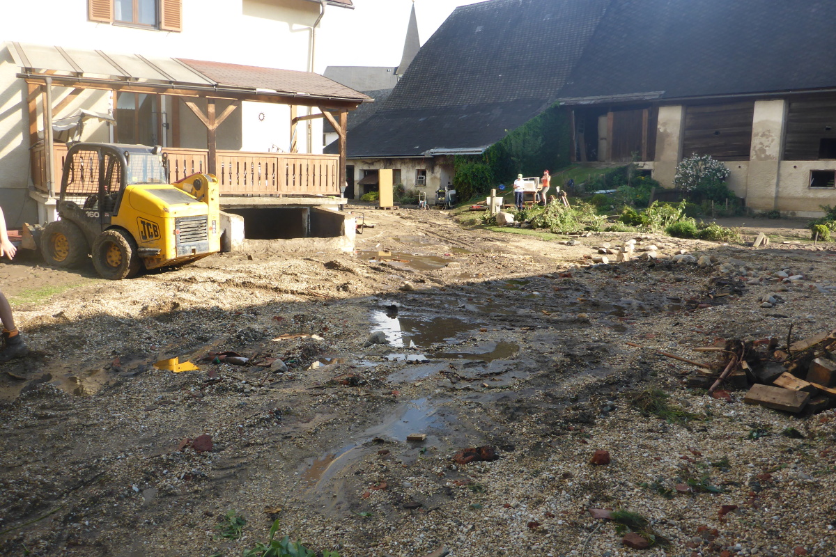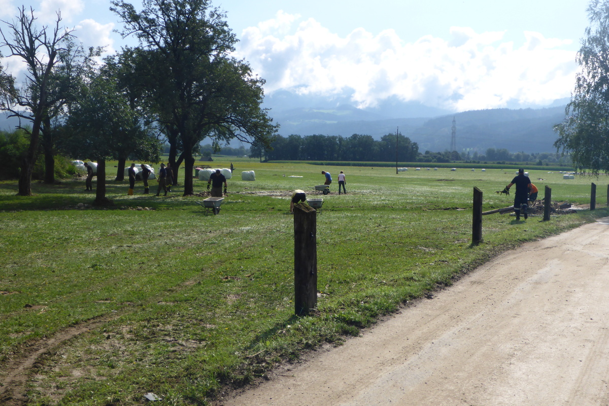 dem Aufräumarbeiten im Ort.