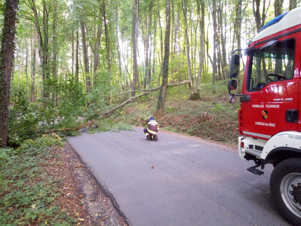 Baum über Straße auf der Spirkenleiten 27. August 2022 liebmann Allgemein Am Samstag den 27.08.2022 rückte die FF Langegg zu einer Baumbergung nach Mittergoggitsch aus. Eigesetzt waren RLF-A Langegg mit 7 Mann.